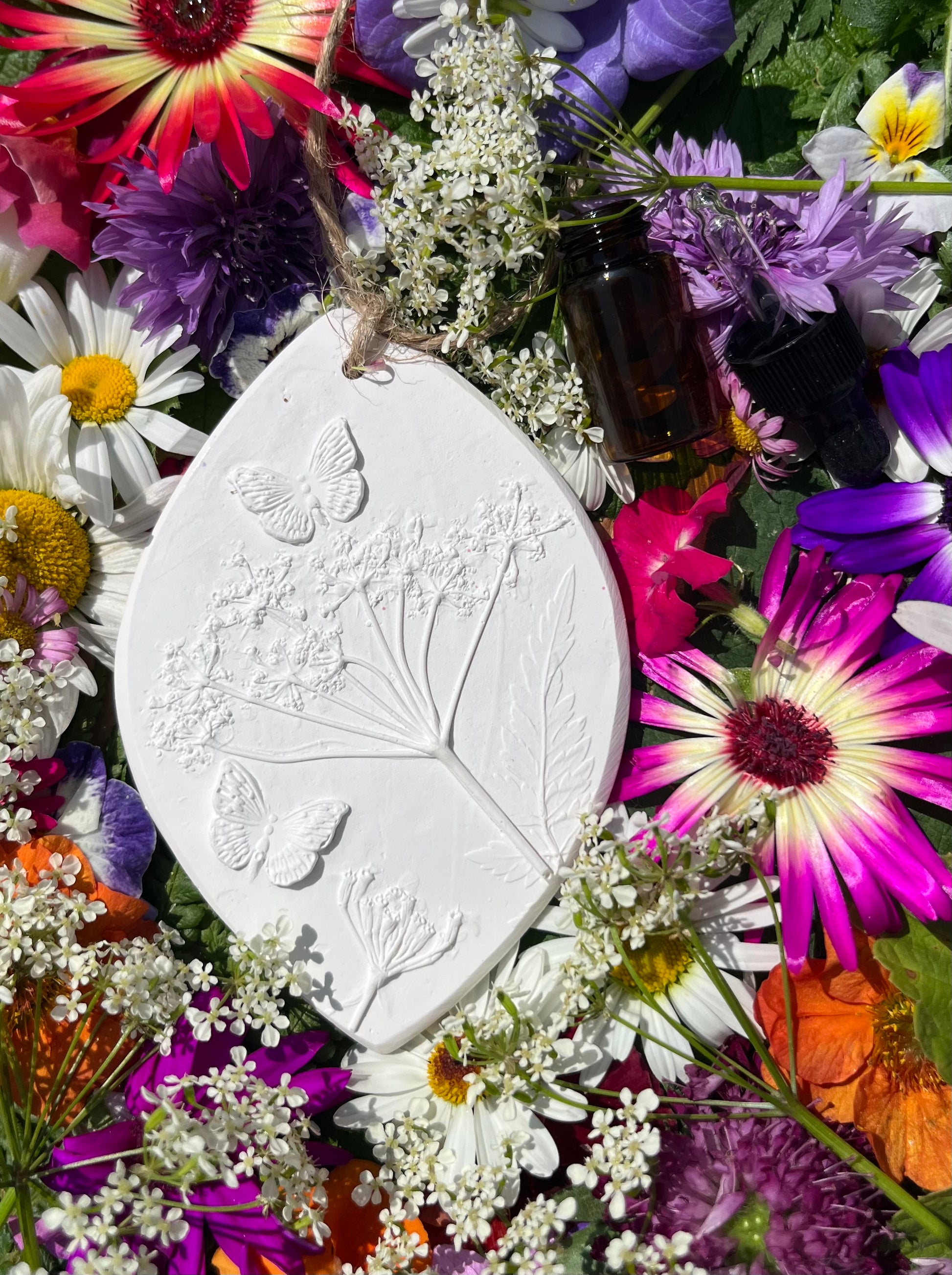 Mother Nature‘s beauty frozen in time. A modern fossil. Unique hanging decoration. Perfect to decorate small spaces in your home whilst releasing a subtle fragrance. Simply choose which scent you would like us to fragrance this botanical art with, from the list below. You will also be supplied with a 3ml vial of the fragrance so you can top up your casting. Simply add a few drops to the back of the cast and wait for it to dry, it will then diffuse a subtle scent. Each diffuser is individually boxed and supplied with jute twine ready for hanging. Great in your car, cupboard, wardrobe, hang on your boot or coat rack to add a fresh fragrance.