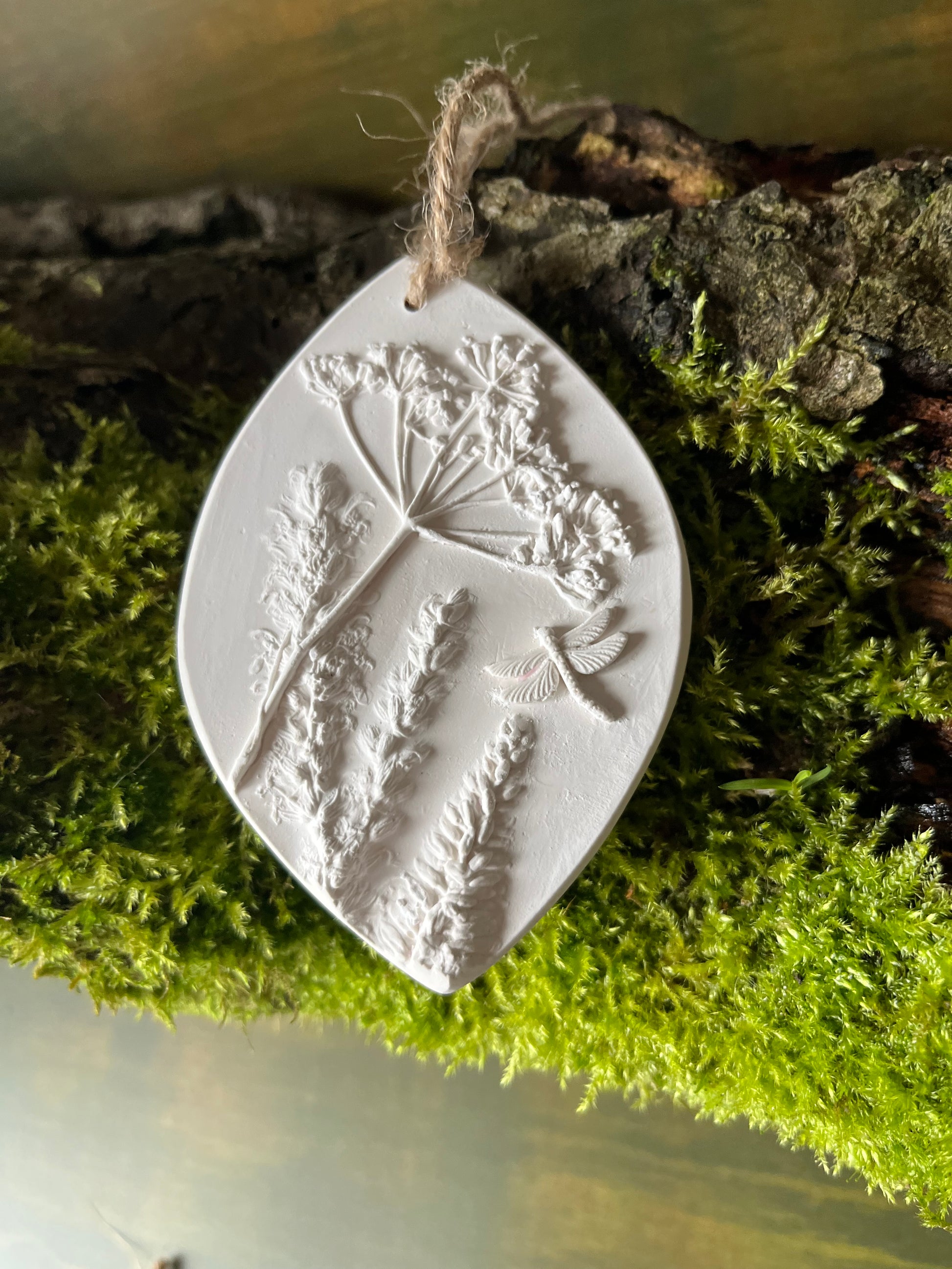 Part of our new Cottage Garden collection. This cast features a mix of botanical casts from flowers and plants found in our cottage garden. Then I have added the whimsical touch of an imagined dragonfly.