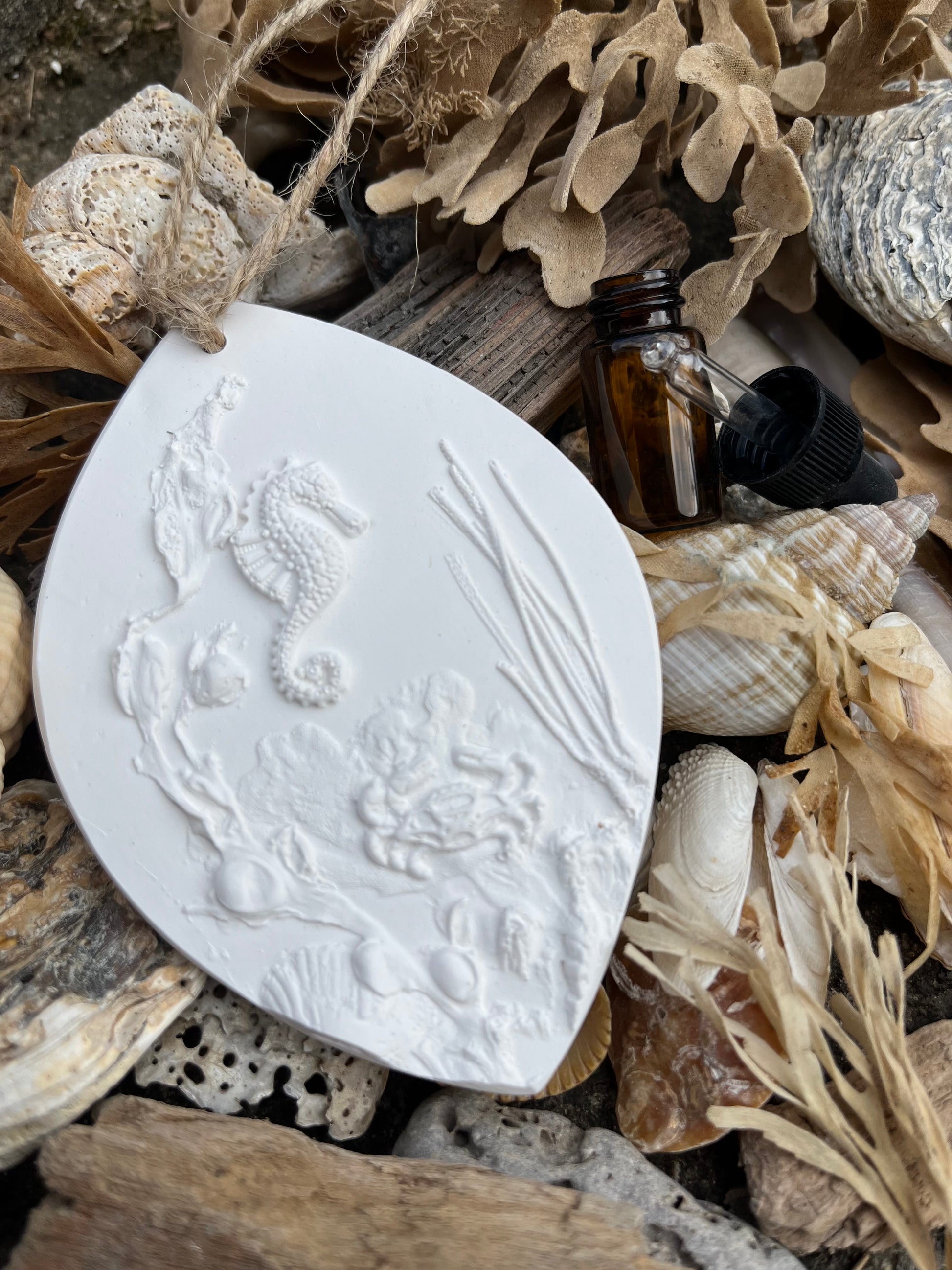 Mother Nature‘s beauty frozen in time. A modern fossil. Unique hanging decoration. Perfect to decorate small spaces in your home whilst releasing a subtle fragrance. Simply choose which scent you would like us to fragrance this botanical art with, from the list below. You will also be supplied with a 3ml vial of the fragrance so you can top up your casting. Simply add a few drops to the back of the cast and wait for it to dry, it will then diffuse a subtle scent. Each diffuser is individually boxed and supplied with jute twine ready for hanging. Great in your car, cupboard, wardrobe, hang on your boot or coat rack to add a fresh fragrance.